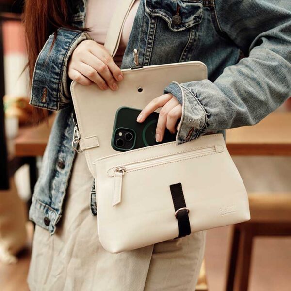 Compacto, elegante y sorprendentemente funcional, este crossbody combina diseño minimalista con compartimentos bien pensados para que lleves lo que realmente importa. Ideal para el día a día, con una correa ancha y cómoda, y con detalles que le dan un carácter único.
