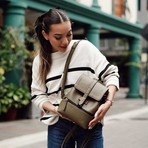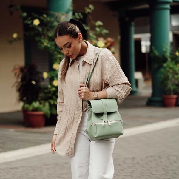 Compacta, ligera y con detalles únicos, es el accesorio perfecto para llevar lo esencial con comodidad y mucho carácter. Trayendo un nuevo concepto de mochila y bolso en una misma Hansel.